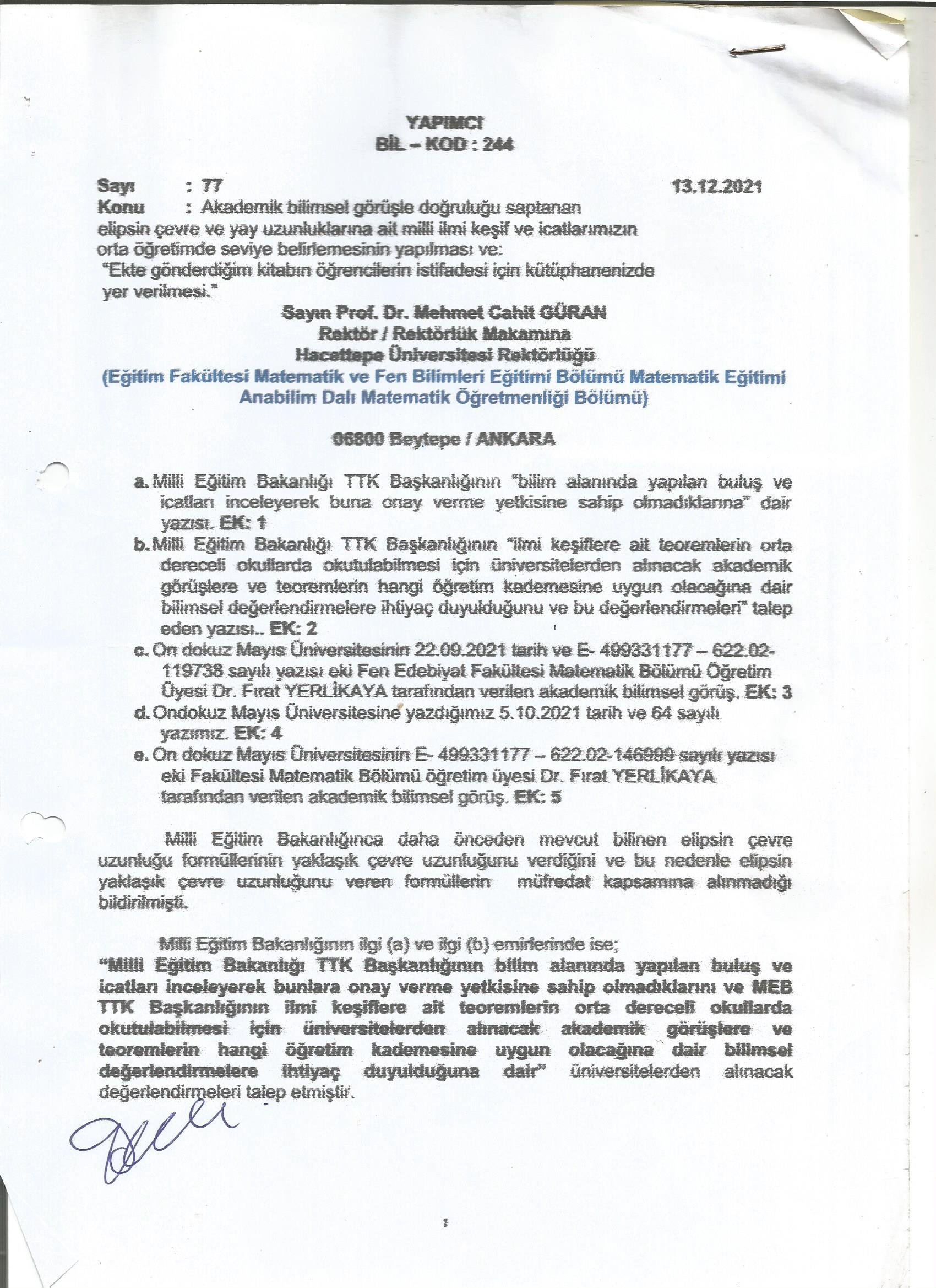 Samsun Medya Gazeteciler Cemiyeti Başkanı, Bilim insanı, Matematikçi Kerim Sarılar Orta öğretimde “Seviye Belirlemesi” ile ilgili talepte bulunduğu TC Hacettepe Üniversitesi Hukuk Müşavirliğinden alınan Rektör Prof. Dr. Mehmet Cahit GÜRAN imzalı yazı ve eki Fen Fakültesi Dekanlığının; “Matematik Bölümünde talep edilen incelemeyi yapabilecek öğretim üyesinin bulunmadığı” şeklinde gelen yazısını inceler incelemez orta öğretimde “Seviye Belirlemesi” ile ilgili talebinin TC Hacettepe Üniversitesi Rektörlüğü Eğitim Fakültesi Matematik ve Fen Bilimleri Eğitimi Bölümü Matematik Eğitimi Ana Bilim Dalı Başkanlığına gönderilmesi gerekirken Fen Fakültesi Dekanlığına gönderildiği görüldü.