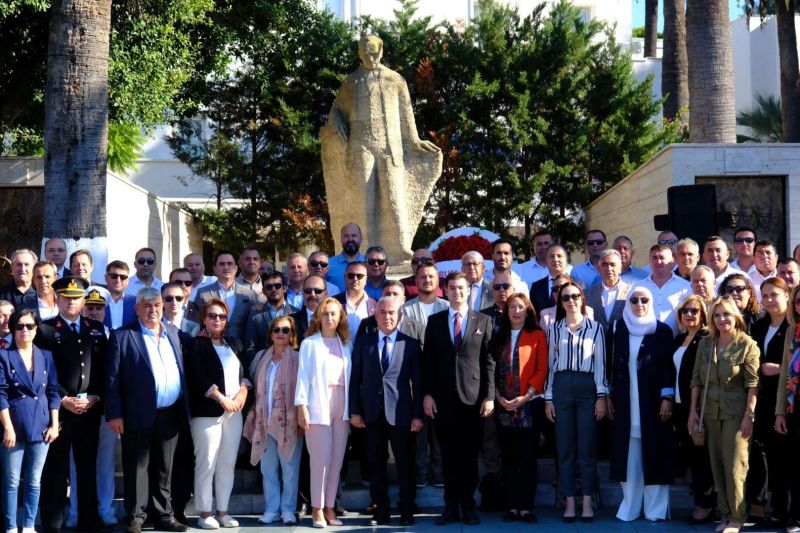 Bodrum Muhtarlar Birliği Derneği Başkanı Ahmet Cemil Gündüz, Bodrum Belediye Başkanı Tamer Mandalinci ve Bodrum Kaymakamı Mustafa Çit'in Atatürk anıtına çelenk sunmasıyla başlayan tören, saygı duruşu ve İstiklal Marşı’nın okunmasıyla devam etti.