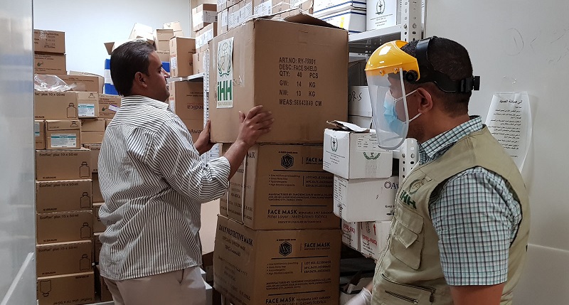 Yeni tip koronavirüs (Kovid-19) salgınından etkilenen ülkelerden Irak’a; 40 litrelik 60 adet oksijen tüpü, 90 adet oksijen cihazı, 52 bin tıbbi maske, 80 bin tıbbi eldiven, 324 adet ateş ölçer, bin adet doktor elbisesi, 384 adet dezenfektan ve tıbbi yardım malzemesi gönderen İHH İnsani Yardım Vakfı bölgede sağlık alanında çalışmalarına devam ediyor.