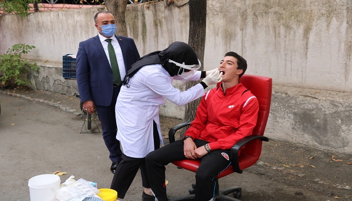 Ağrı Gençlik ve Spor İl Müdürlüğü hizmet binası sabah saatlerinde sporcular ve antrenörlere koronavirüs testi yaptırdı.