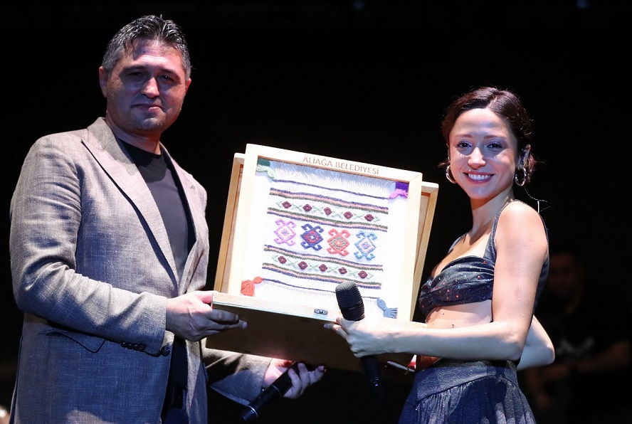 Konserin bir bölümünde sahneye davet edilen Aliağa Belediye Başkanı Serkan Acar, sevilen şarkıcılara Aliağa Sanat Günleri'ne katılımlarından dolayı teşekkür ederek kendilerine Aliağalı üretici kadınlar tarafından el emeği ile üretilen, Aliağa yöresine özgü, tarihi Helvacı Kilimi hediye etti.