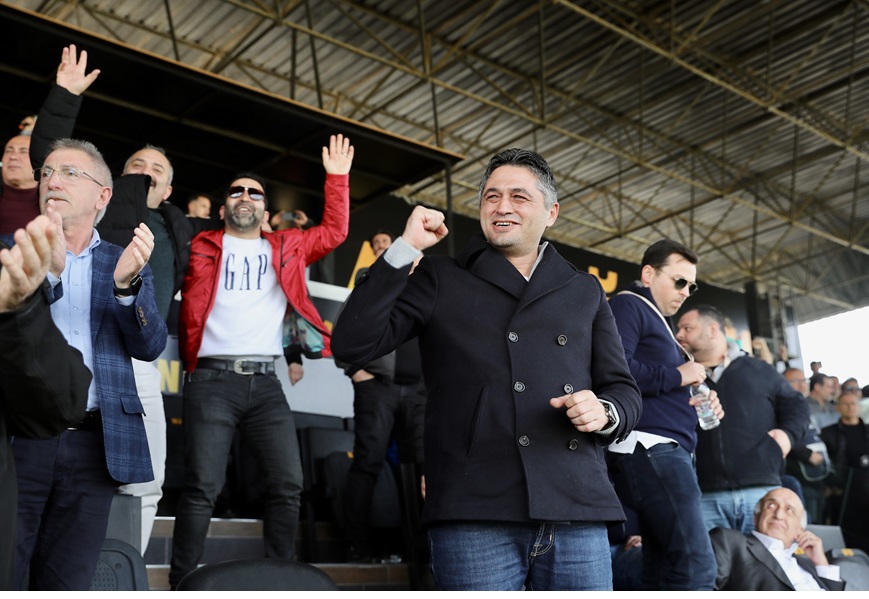 Aliağa Belediye Başkanı Serkan Acar ve Aliağaspor FK Başkanı Kamil Önal, Aliağa Atatürk Stadyumunda oynanan karşılaşmayı Aliağalı taraftarlarla birlikte tribünden takip etti.