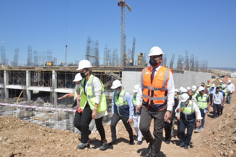 Dokuz Eylül Üniversitesi Rektörü Prof. Dr. Nükhet Hotar, Aliağa Kaymakamı Ömer Karaman ve Aliağa Belediye Başkanı Serkan Acar yaptıkları açıklamaların ardından beraberindeki heyetle birlikte inşaat sahasını gezerek incelemelerde bulundular.