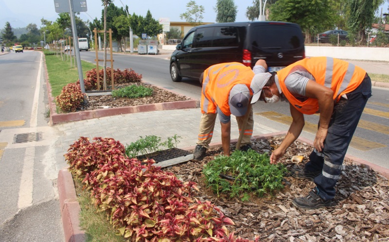 Antalya Büyükşehir Belediyesi Kemer’in Atatürk ve Demokrasi Bulvarına 50 bin adet takades çiçeği dikti.