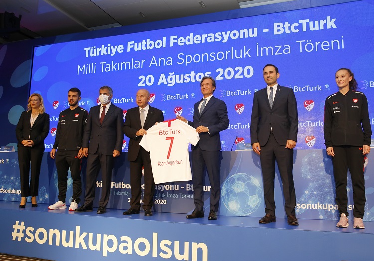 Türkiye’de Bitcoin ve kriptoparaların kolayca ve güvenle alım satımının yapılabildiği, Türkiye’nin ilk, dünyanın dördüncü bitcoin ve kriptopara alım satım platformu BtcTurk, başarılarına ortak olmak için Kadın ve Erkek Millî Takımları ile ‘Ana Sponsorluk’ anlaşması imzaladı. BtcTurk, yaptığı bu anlaşma ile milli takım sponsorluğuna imza atan dünyadaki ilk kriptopara platformu oldu.