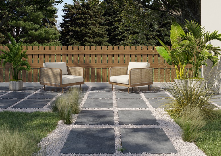 Qua Granite’in taş görünümlü, mat yüzeyli çevre dostu Vitoria Anthracite ürünü ile bahçelerinizde fark yaratın.