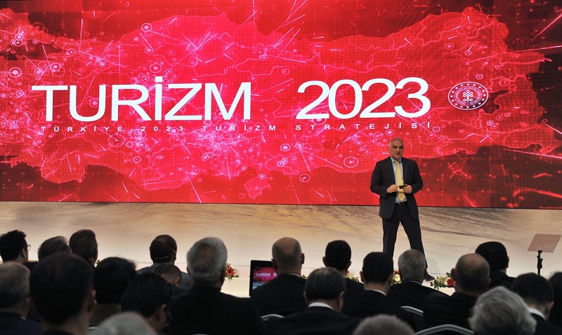 Kongrede, Türkiye'nin 2023 turizm stratejisine ilişkin sunum yapan Bakan Ersoy, "Turizmdeki büyüme geçen yıl dünyada yüzde 5,4, Türkiye'de ise yüzde 21 olarak gerçekleşti. Türkiye dünyadan daha hızlı büyüyor. 2023 hedefimiz 75 milyon turist, çıtayı çok daha yukarıya çıkarıyoruz." diye konuştu.