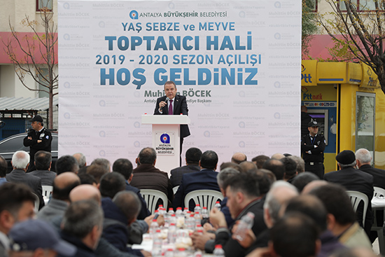 Antalya Yaş Sebze ve Meyve Toptancı Hali sezon açılışına katılan Büyükşehir Belediye Başkanı Muhittin Böcek,, esnaf temsilcilerinin çalışma saatlerinin düzensizliğinden yakınması üzerine 1 Aralık itibariyle Toptancı Hal’de saat 03.00’dan önce satış yapılmayacağını söyledi.