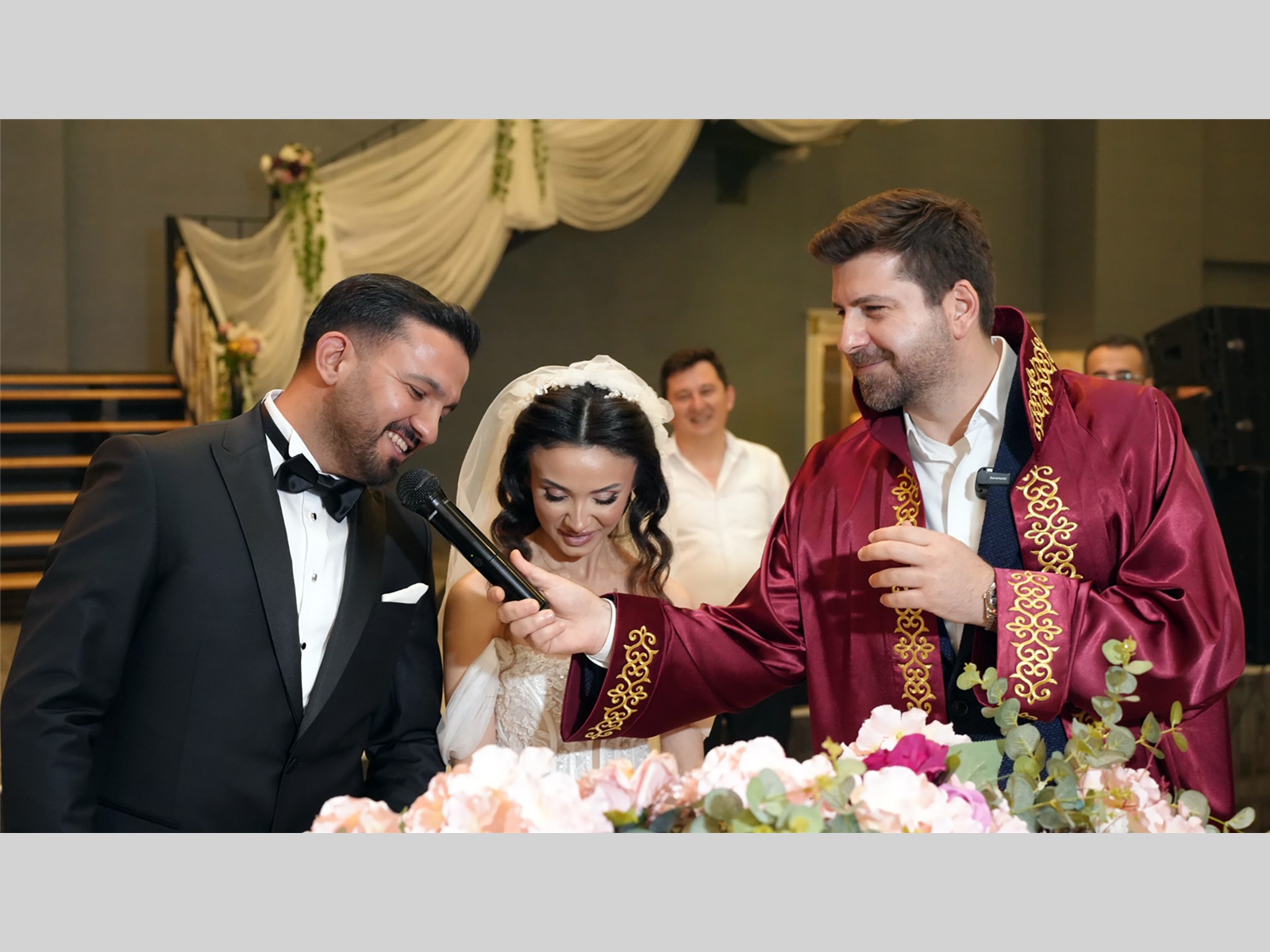 Nikah töreninin ardından, kutlamalar başladı. Başkan Boltaç, gelin Burcu Karslı ve damat Mehmet Çil ile birlikte sahneye çıkarak oyun oynadı. Bu samimi ve eğlenceli anlar, törene katılan herkesin yüzünde gülümsemeler yarattı. Başkan Boltaç'ın oyun sırasında sergilediği performans, davetliler tarafından büyük beğeni topladı ve törene ayrı bir renk kattı.
