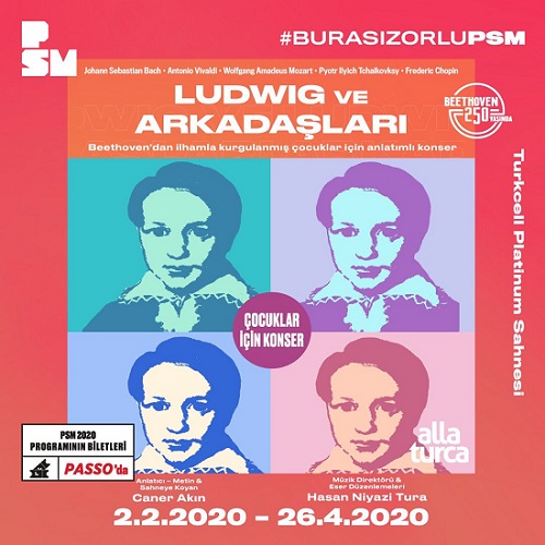 Bu yıl 250. yaşını kutlayan Klasik Batı Müziği'nin dahi bestecisi Ludwig van Beethoven'ın yaşamı ve eserleri, onu etkileyen Bach, Haydn, Mozart ve ondan etkilenen Schubert, Chopin, Tchaikovsky ve daha nice bestecinin eserleri, çocuklara özel klasik müzik konserinde sahneye taşınıyor. İlk kez Zorlu PSM’de minik dinleyiciler ve ailelerle buluşacak Ludwig ve Arkadaşları; besteci ve orkestra şefi Hasan Niyazi Tura'nın müzik direktörlüğünde, rejisör Caner Akın'ın yönetimi ve anlatımında, Zorlu PSM iş birliğiyle allaturca yapımıyla hayata geçiyor.