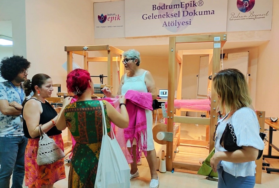 Bodrum Belediyesi Kadın ve Aile Hizmetleri Müdürü Şenay Yılmaz ve ekibi, Şevket Sabancı Kültür ve Sanat Merkezi içerisinde faaliyet gösteren Begonvil Kadın Kooperatifini ziyaret etti. Begonvil Kadın Kooperatifi Yönetim Kurulu Üyesi Funda Pekdemir Akçalı, faaliyetlerinden bahsederek yapmış oldukları çalışmaları dokuma atölyesinde gösterdi.