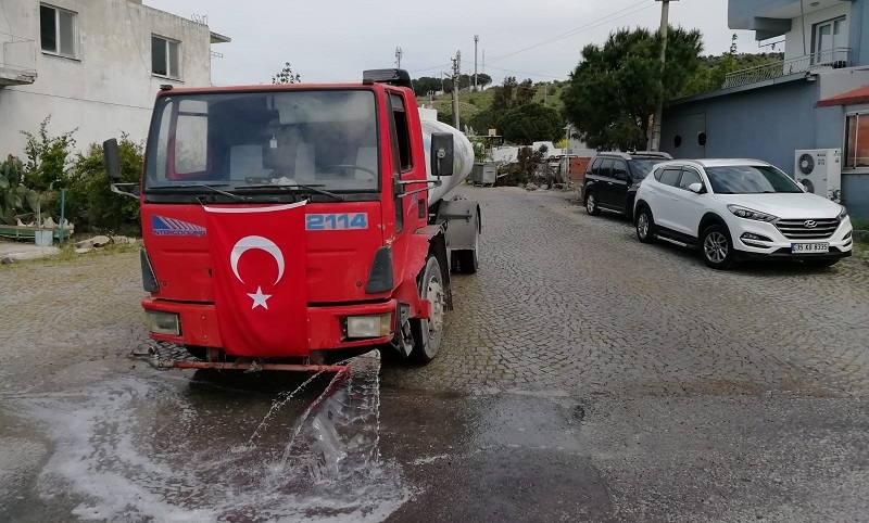 İzmir Aliağa Belediyesi Hijyen Ekipleri’nin kentin çeşitli noktalarında yaptığı dezenfekte çalışmaları aralıksız sürüyor.