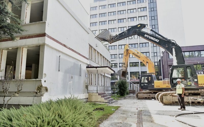 Bursa Büyükşehir Belediyesi’nin en büyük iştiraklerinden biri olan BUSKİ Genel Müdürlüğü, Acemler yerleşkesinde riskli yapı olarak değerlendirilip tahliye edilen Abone İşleri Dairesi Başkanlığı binasını yıktı.