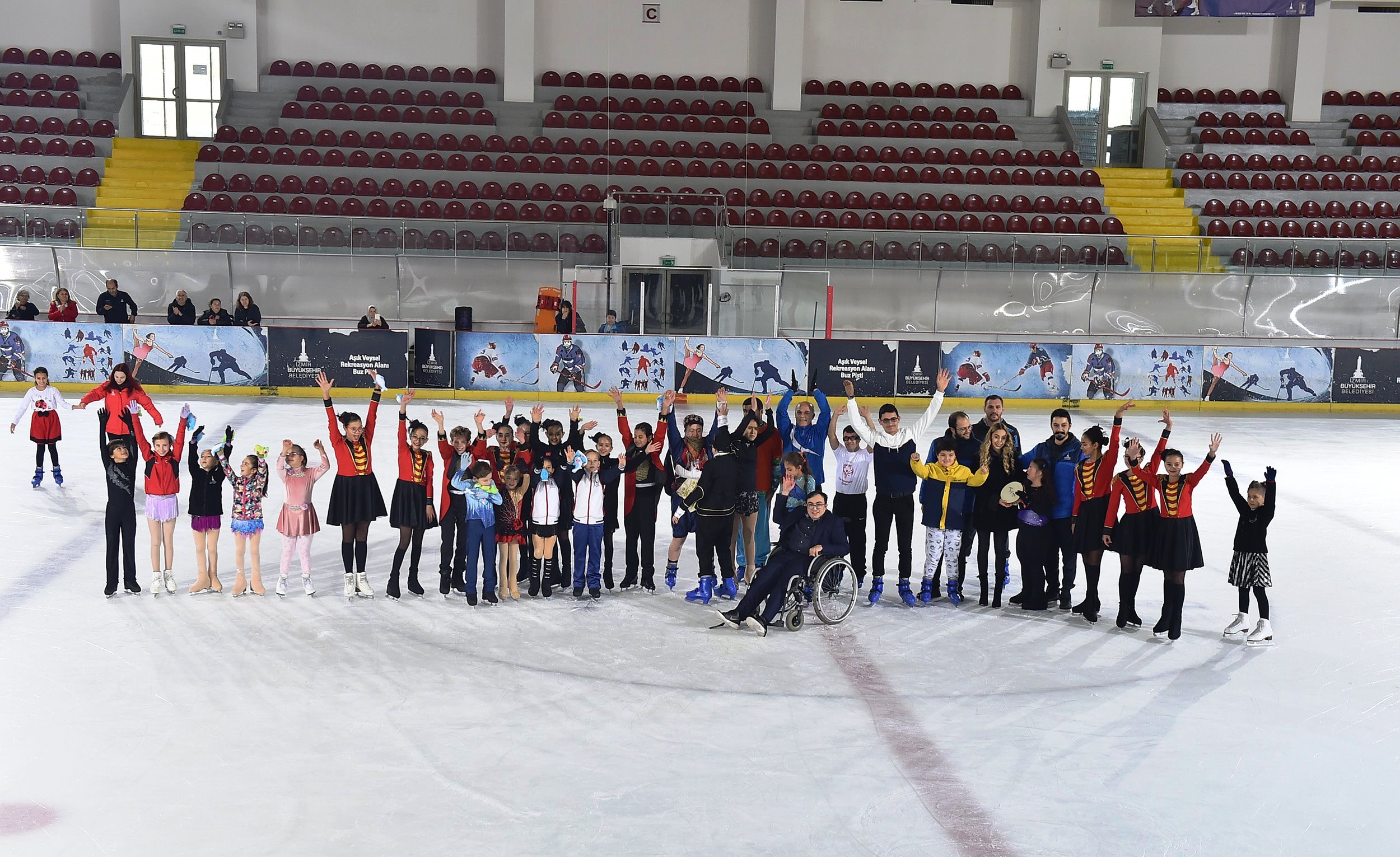 İzmir Büyükşehir Belediye Gençlik ve Spor Kulübü’nde eğitim gören özel gereksinimli çocuk buz patenciler ile profesyonel çocuk buz patenciler pistte hünerlerini sergiledi.