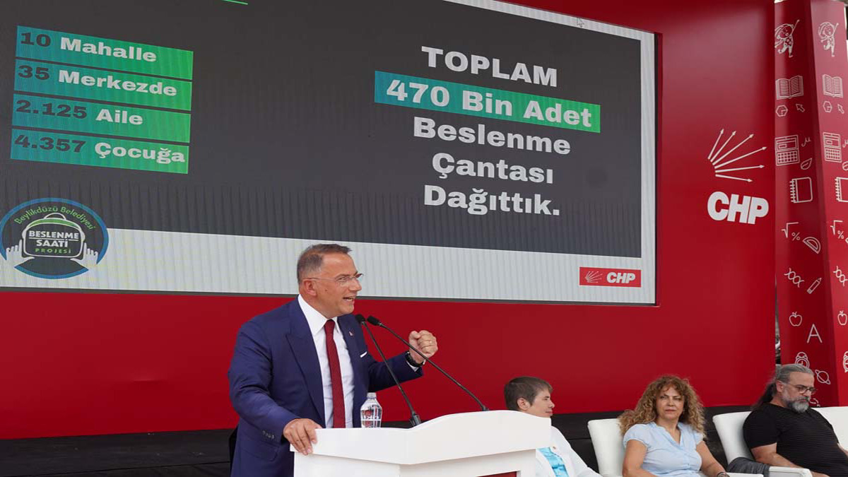 Beylikdüzü Belediye Başkanı Mehmet Murat Çalık, Cumhuriyet Halk Partisi’nin Eğitim Maratonu etkinliğinde konuştu. Beylikdüzü Belediyesi’nin Türkiye örnek olan “Beslenme Saati Uygulaması” hakkında bilgiler veren Başkan Çalık, “Beslenme saati programımızı, belediyemizin kısıtlı imkanları ile yapıyoruz. Bu proje sosyal adalet projesidir. Şubat 2022’den bu yana 10 mahalle, 35 merkezde 4 bin 357 çocuğumuza 470 bin beslenme gıda paketini ulaştırdık. Yoksulluk çocukların kaderi olamaz!” dedi.