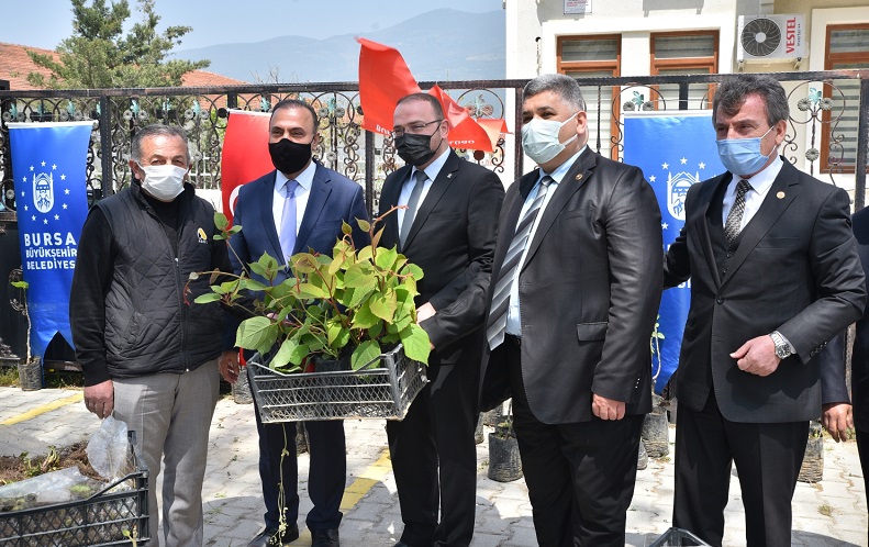 Konuşmaların ardından Başkanvekili Süleyman Çelik, İl Tarım ve Orman Müdürü Hamit Aygül, AK Parti Gemlik İlçe Başkanı Mehmet Şamil Yiğit ve meclis Üyeleri tarafından çiftçilere fide ve fidanlar teslim edildi.