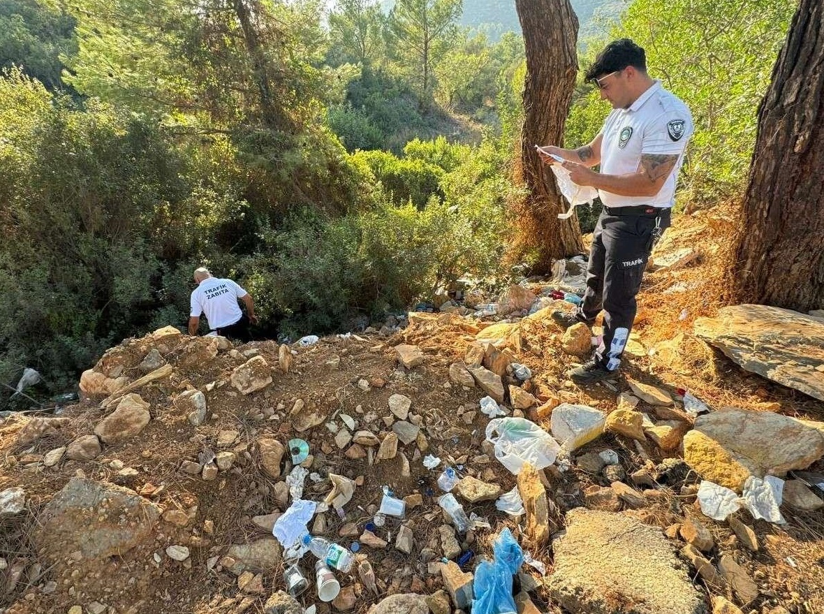 Bodrum Belediyesi Zabıta Müdürlüğü Trafik Zabıta ekipleri, Yalı Çiftlik – Bodrum yolu üzerinde yaptıkları denetimde, yol kenarındaki ormanlık alana atılan çöpleri incelemeye aldı. Bilet, tek kullanımlık içecek ve yolcu listesi gibi atıklardan iki otobüs firmasını tespit eden zabıta ekipleri ilgili firmalara cezai işlem uyguladı.