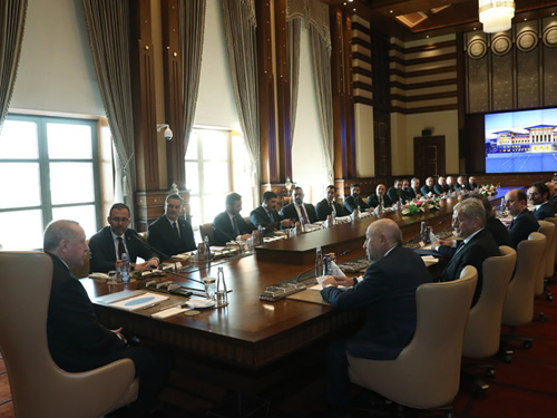 Erdoğan, Kulüpler Birliği Başkanı Mehmet Sepil ve komisyon üyelerini Cumhurbaşkanlığı Külliyesinde kabul etti. Görüşmede; Gençlik ve Spor Bakanı Mehmet Muharrem Kasapoğlu ve AK Parti İzmir Milletvekili Alpaz Özalan da hazır bulundu.