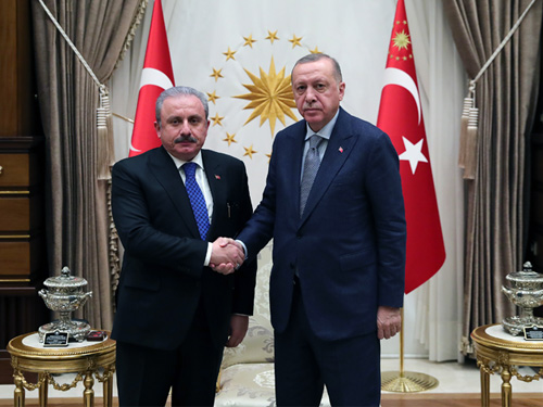 Erdoğan, Şentop ile Cumhurbaşkanlığı Külliyesinde görüştü.