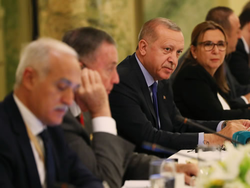 Erdoğanda Programda Cumhurbaşkanı; Dışişleri Bakanı Mevlüt Çavuşoğlu, Hazine ve Maliye Servisi Berat Albayrak, Millî Savunma Müdürü Hulusi Akar ve Ticaret Rehberi Ruhsar Pekcan eşlik etti.