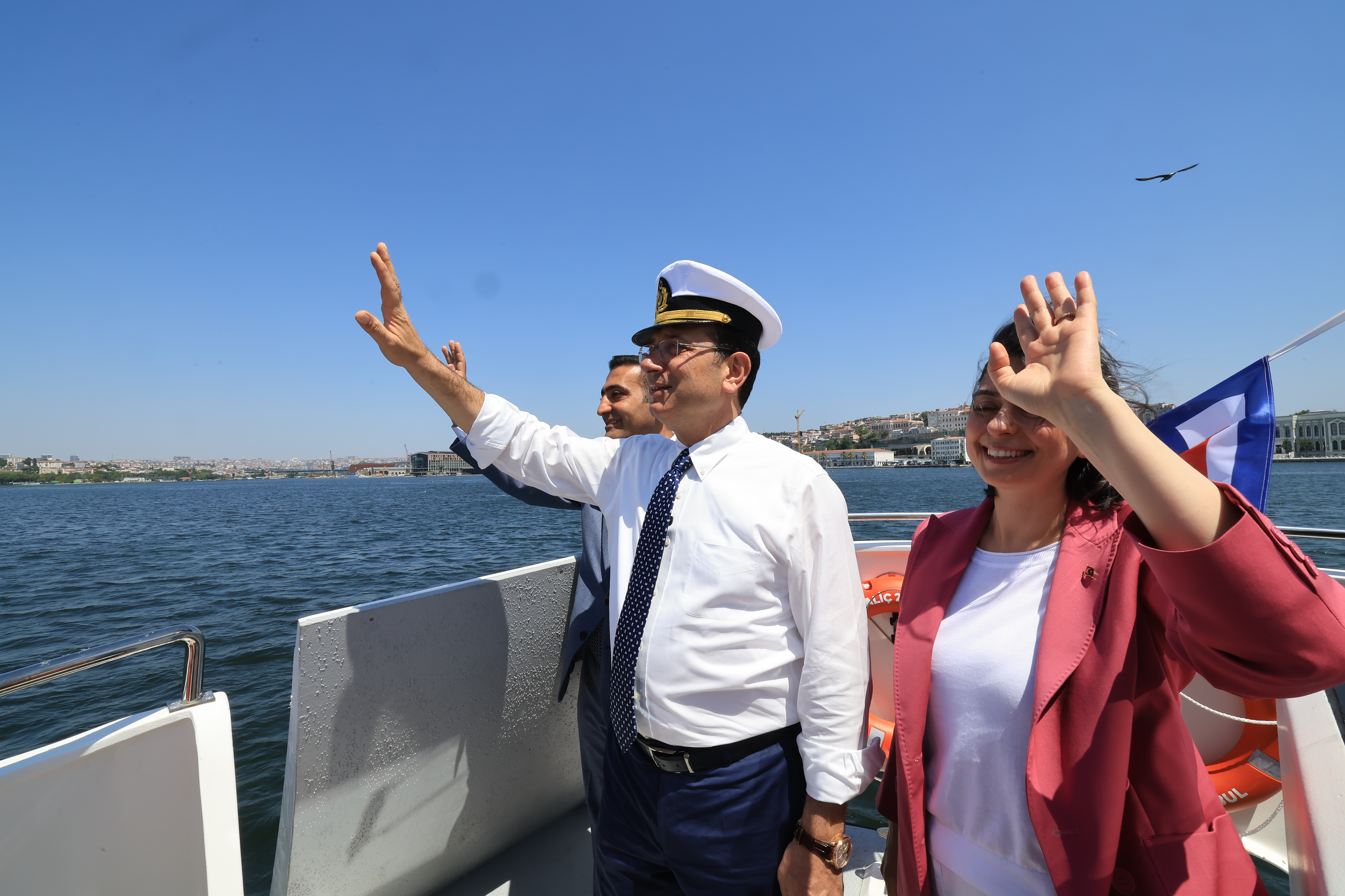 Vapur düdükleri eşliğinde araçların denizle buluşmasına tanıklık eden Dedetaş ve İBB Başkanı İmamoğlu, diğer katılımcılar ile birlikte Deniz Dolmuşla ilk yolculuğu gerçekleştirdi. Yolcular, Haliç Tersanesi’nden İBB İletişim Koordinatörlüğü’nün bulunduğu iskeleye kadar keyifli bir Haliç turu attı.