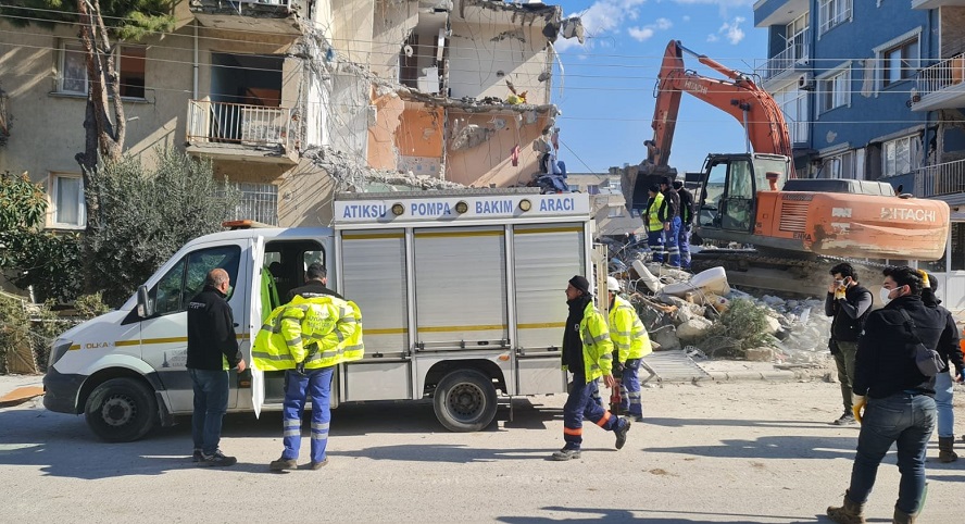 İzmir Büyükşehir Belediyesi ekipleri deprem bölgesinde arama-kurtarma, sağlık hizmetleri ve depremzedelerin acil ihtiyaçlarının karşılanmasına yönelik destek çalışmalarının yanı sıra kentlerin çöken altyapısına da el atıyor. Beş gündür su verilmeyen Hatay’da İZSU tarafından acil ihtiyacı karşılamak üzere tankerlerle su dağıtımı yapılıyor. Hatlarda oluşan arızaların giderilmesi için de İzmir’den uzman ekip ve personel yola çıkıyor.