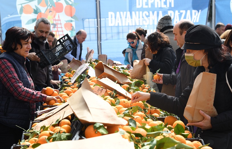 “Deprem bölgesinde köylere gittiğimiz zaman çiftçilerin ürünlerin çoğunın ellerinde kaldığını gördük. Çiftçimiz, ağacından limonunu, mandalinasını, portakalını toplayamamıştı. Biz de belediye olarak hemen Samandağ’da bir depo kurduk. Mandalinaların birçoğu enkazın altında kalmıştı. Satılmadığı takdirde oradaki çiftçinin hayatını idame ettirmesi mümkün değil. Ayrıca ağaçta kalırsa önümüzdeki sene verim düşüklüğü olacak.