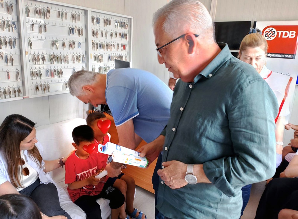 Başkan Dr. Dt. Hasan Boğa, "Biz diş hekimleri olarak sadece ağız ve diş sağlığı değil, aynı zamanda sağlıklı bir gelecek için de katkı sunma amacındayız. Meslektaşlarımızla birlikte çocuklarımıza ağız diş sağlığını korumaları konusunda bilgiler verdik. Anne babalara çocuklarının zorlu koşullarda bile ağız hijyenini korumaları gerektiğini ilettik. Doğru diş fırçalamanın yöntemlerini gösterdik. Bu tür sosyal desteklerin, toplumun her kesimiyle birlikte daha da büyüyeceğine inanıyoruz. Çünkü hep birlikte iyileşeceğiz. Unutmayalım, çocuklarımıza umut olmak, geleceğe umut olmak demektir. Bu anlamlı buluşmaya katkı koyan, destek veren tüm meslektaşlarıma sonsuz teşekkür ediyorum" diye konuştu.