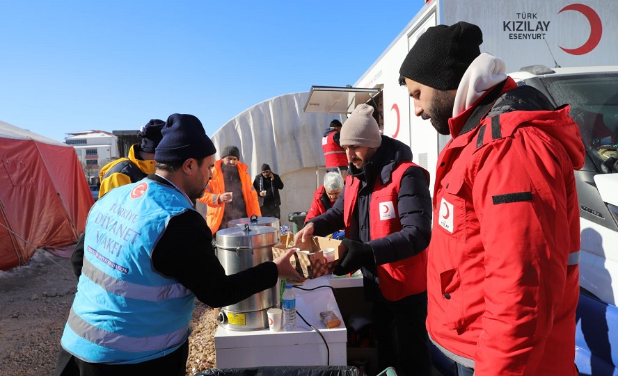 Deprem sonrası bölgeye Kızılay profesyonel ve gönüllüleri, sahada 961 profesyonel ve günlük 4.565 gönüllüsü ile çalışmalara destek veriyor. Kızılay 86 ikram aracı, 320 mobil mutfak, 33 mobil fırın, 22 sahra mutfak ve 330 diğer araçlar olmak üzere bölgede toplamda 791 araçla hizmet veriyor. Ayrıca 5 Kızılay aşevin afetzedelere düzenli olarak yemek çıkarılıyor. Kızılay koordinesindeki Beslenme Platformu ise şimdiye kadar yaklaşık 4.5 milyon kişilik çorba, 20 milyon kişilik sıcak yemek, 22 milyon ekmek dağıttı. Ayrıca, 10 milyondan fazla ikramlık malzeme ve 15.5 milyon adet su ile 2 milyondan fazla içecek dağıtımı gerçekleştirdi.