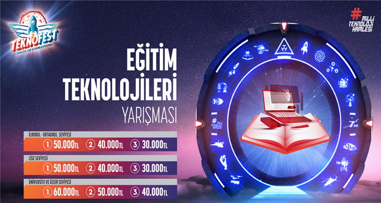 TEKNOFEST kapsamında düzenlenen Eğitim Teknolojileri Yarışmasında; ilkokul ve ortaokul seviyesindeki birincilere 50.000 TL, ikincilere 40.000 TL, üçüncülere 30.000 TL, lise seviyesinin birincisine 50.000 TL, ikincisine 40.000 TL, üçüncüsüne 30.000 TL, üniversite ve üzeri seviyesindeki birinciye ise 60.000 TL, ikinciye 50.000 TL, üçüncüye 40.000 TL ödül verilecek. Başvuruların 20 Şubat tarihinde sona ereceği yarışma için sende hemen hazırlan!