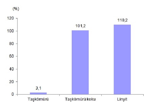 Üretilen katı yakıtların teslimatları karşılama oranı %3,1 ile en düşük taşkömüründe gerçekleşti. Bu oran taşkömürü kokunda %101,2 iken, linyitte %110,2 olarak hesaplandı.