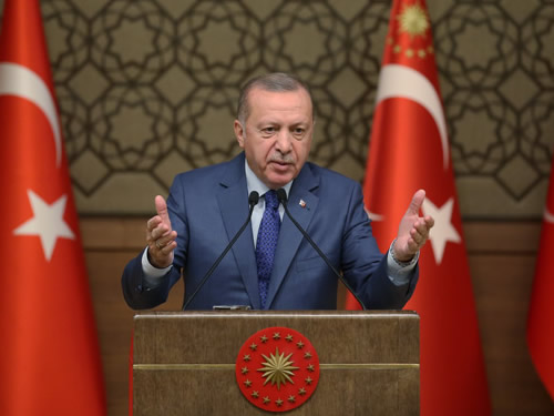 Türkiye’nin Amerika ve Rusya ile vardığı mutabakatların amacına ulaşmasının, PKK-YPG ve DEAŞ’ın, sınırdan başlayarak, Suriye topraklarındaki varlığının tamamen sona erdirilmesine bağlı olduğunu kaydeden Erdoğan, “Bunu muhataplarımıza da her fırsatta ifade ediyoruz. İster Amerika, ister Rusya, ister rejim, isterse bir başka güç olsun, terör örgütlerinden herhangi birini, isim, bayrak veya üniforma değiştirerek yeniden karşımıza dikmeye kalkarsa biz bu oyuna gelmeyiz. Bu durumda, hiç kimse kusura bakmasın, kendi bildiğimiz yolda ilerlemeye devam etmekten asla çekinmeyiz. Bu yolda ödeyeceğimiz bedelin büyüklüğünü küçüklüğünü de asla hesap etmeyiz” diye ekledi.