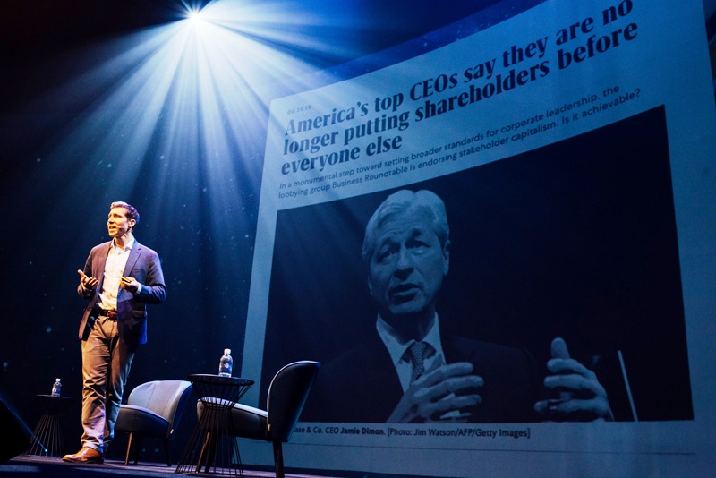 B LAB Europe’ın Yöneticisi Nathan Gilbert, toplumun yaşadığı zorlukları ele almak ve daha kapsayıcı bir ekonomi oluşturmak üzere iş dünyasının gücünden yararlanmak için tarihsel bir küresel kültür değişim sürecinde olunduğunu açıkladı. Edelman’ın “2019 Trust Barometer” Araştırması’na göre, insanların yüzde 76 oranında CEO’lardan, değişim sürecine liderlik etmesini beklediklerini ekledi. Mud Jeans Kurucu ve CEO'su Bert Van Son ile gerçekleştirdiği sohbette ise, ‘yavaş moda’, ‘eco chain ve şeffaflık konularının yanı sıra Mud Jeans’in kiralama iş modeline dair bilgiler ele alındı.