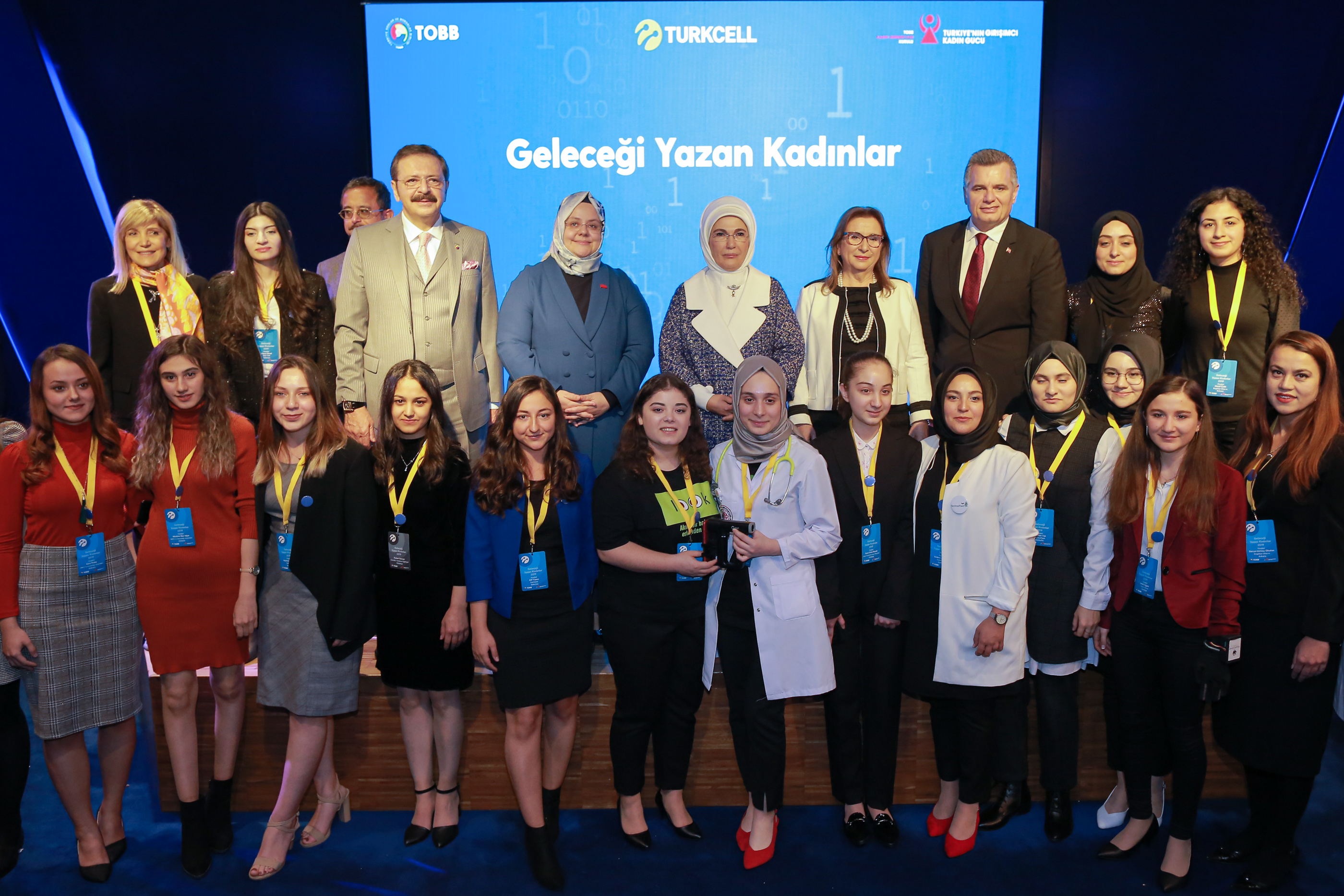 Türkiye’nin en büyük kadın yazılım, eğitim ve gelişim platformu olan Geleceği Yazan Kadınlar Projesi, üçüncü yılını Turkcell Küçükyalı Plaza’da düzenlenen görkemli bir final töreniyle tamamladı. Turkcell ve TOBB işbirliğiyle hayata geçirilen Geleceği Yazan Kadınlar’ın final töreninde projeye en önemli desteği veren Emine Erdoğan Hanımefendi’nin yanı sıra; Aile, Çalışma ve Sosyal Hizmetler Bakanı Zehra Zümrüt Selçuk, Ticaret Bakanı Ruhsar Pekcan, Türkiye Odalar ve Borsalar Birliği Başkanı M. Rifat Hisarcıklıoğlu, ve Turkcell Genel Müdürü Murat Erkan da yer aldı. İş dünyasından isimler ve projeye katılan kadınlar da törenin davetlileri arasındaydı.
