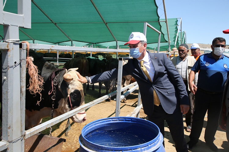 Kesim sistemi hakkında da ilgi veren Ramazan Şimşek “İlk kesimde 16 dk sonraki kesimlerde 8 dakikada kurban kesim işlemini tamamlayacağız. Alanda, günde 240 kesim yapabileceğiz. Hayvan satış alanının giriş kapılarına ve uygun yerlere çağımızın salgını olan corona virüsten korunma önlemlerini içeren tabelalar ve bilgilendirici yazılar yerleştirdik. Yine hayvan kesim noktalarına ateş ölçümü yapılarak giriş sağlayacağız.”