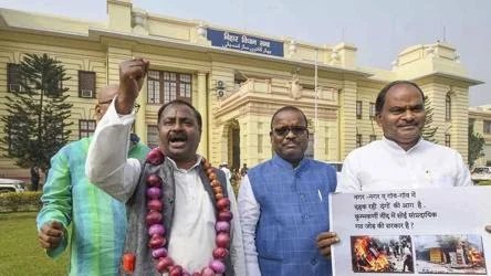 Hindistan'ın muhalif vekillerinden Shiv Chandra Ram, yükselen soğanları protesto etmek amacıyla Bihar eyaleti meclisine soğandan yapılmış bir çelenkle sundu.