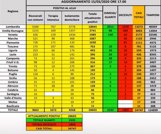 Son güncel bilgiyi sizler ile paylaşmak istiyoruz. Italya'nın bölge bazlı son durumu. Toplam 24.747 vaka, 1809 ölüm