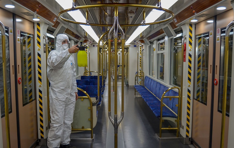 182 metro ve 38 tramvay aracı da her gün fırçalı yıkama ünitesinde otomatik olarak yıkanıyor; dezenfeksiyon sıvısı pulverize edilerek kullanıma hazır hale getiriliyor. Periyodik olarak da koltuk, tutamak gibi malzemeler tamamen sökülüp detaylı olarak temizleniyor.