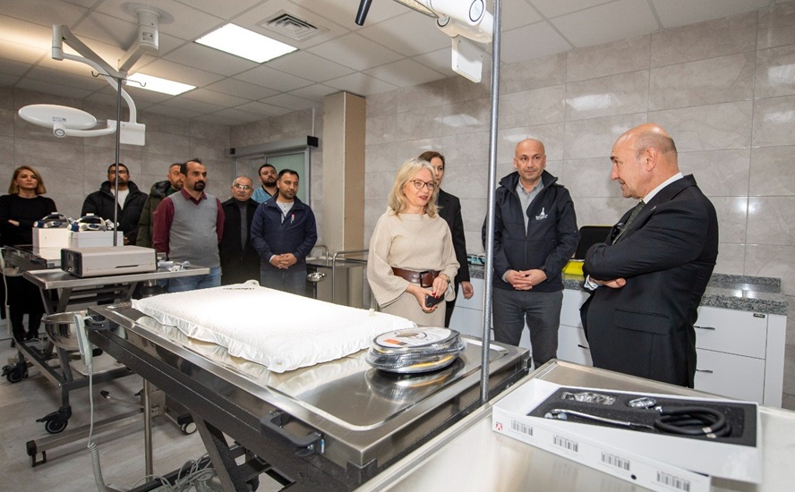Açılış öncesi hastanedeki son hazırlıkları yerinde inceleyen İzmir Büyükşehir Belediye Başkanı Tunç Soyer, Genel Sekreter Yardımcısı Şükran Nurlu’dan bilgi aldı. Başkan Tunç Soyer, “Çok ciddi bir yatırımla, sadece İzmir’in değil Türkiye’nin en büyük hastanesini hizmete açacağız. Olağanüstü yüksek standartta hastane ekipmanı ile donatıldı. Röntgen, ultrason, ameliyathane, kuvöz gibi her türlü eksiğin tamamlandığı bir hastaneyi kente kazandırıyoruz. İzmirlilerin içi rahat etsin, sokak hayvanlarımıza 7/24 hizmet verecek olağanüstü donanımlı teknik ekibimiz var. Son derece yüksek standartta hastanemiz var. Onları doyuracak sağlıklı lezzetli mamalarımız var. Burası dört dörtlük bir tesis” dedi.