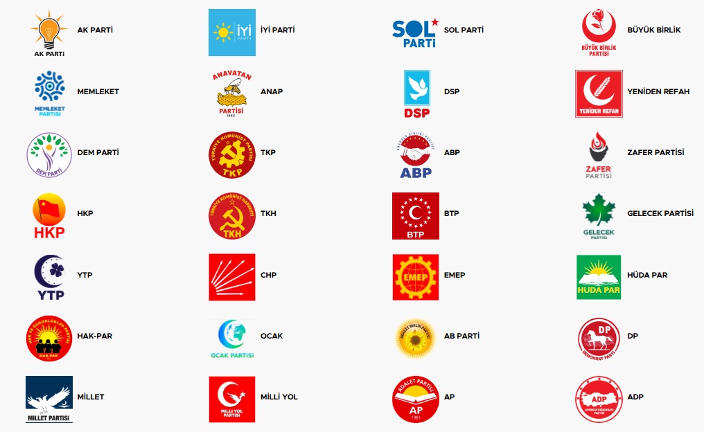 Bu arada 2024 Yerel Seçimlerine 33 adet siyasi parti katılmıştı: AK Parti, İYİ Parti, Sol Parti, Büyük Birlik, Memleket, ANAP, DSP, Yeniden Refah, DEM Parti, TKP, ABP, Zafer Partisi, HKP, TKH, BTP, Gelecek Partisi, YTP, CHP, EMEP, HÜDA PAR, HAK-PAR, Ocak, AB Parti, DP, Millet, Milli Yol, AP, ADP, MHP, TİP, DEVA Partisi, Saadet, Vatan