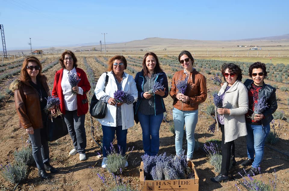 AKSARAY (e-ha) - Türkiye Odalar ve Borsalar Birliği Aksaray Kadın Girişimciler İl İcra Kurulu üyeleri Tapduk Emre Köyündeki Tarım İl Müdürlüğü tarafından hazırlanan “Aksaray’a Lavanta Kousu Yayılıyor” Projesinin uygulandığı lavanta bahçesini ziyaret ederek, lavanta yetiştiriciliği hakkında bilgi alarak incelemelerde bulundu.