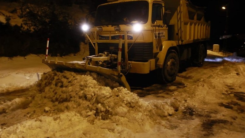 İstanbul’da hafta sonu etkili olan kar yağışının ardından Sarıyer beyaz örtüyle kaplandı. İBB ile koordineli olarak 3 gündür gece gündüz demeden mahallelere kesintisiz hizmet veren Sarıyer Belediyesi, ana ve ara arterlerde konuşlandırılan ekipleriyle yolların kısa sürede açılması için gece mesaisine kaldı. Ekipler, ilçede etkili olan kar yağışının olumsuz etkilerinin vatandaşlara yansımaması için Sarıyer’in mahallelerini sabahın ilk saatlerine kadar karış karış gezerek kar küreme araçları, tuzlama araçları ve iş makinalarının kullanıldığı çalışmalarına devam etti.