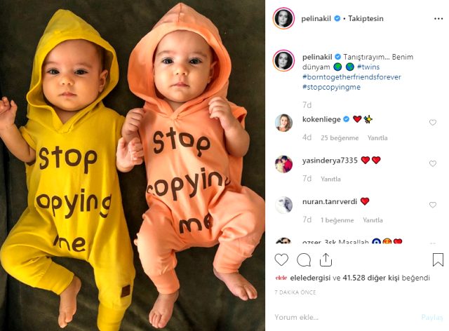 Nisan ayinda kucağına alan çiçeği burnunda anne Pelin Akil, ikizlerinin dünyaya geldiği, ilk Günden İtibaren fotoğraflarını paylaşmaya başlamıştı. Kızların yüzlerini göstermemeye gayret eden çift, bugün bir ilke imza atarak kızları Alin ve Lina'nın yüzünün tam olarak göründüğü odada Instagram'dan paylaştılar.