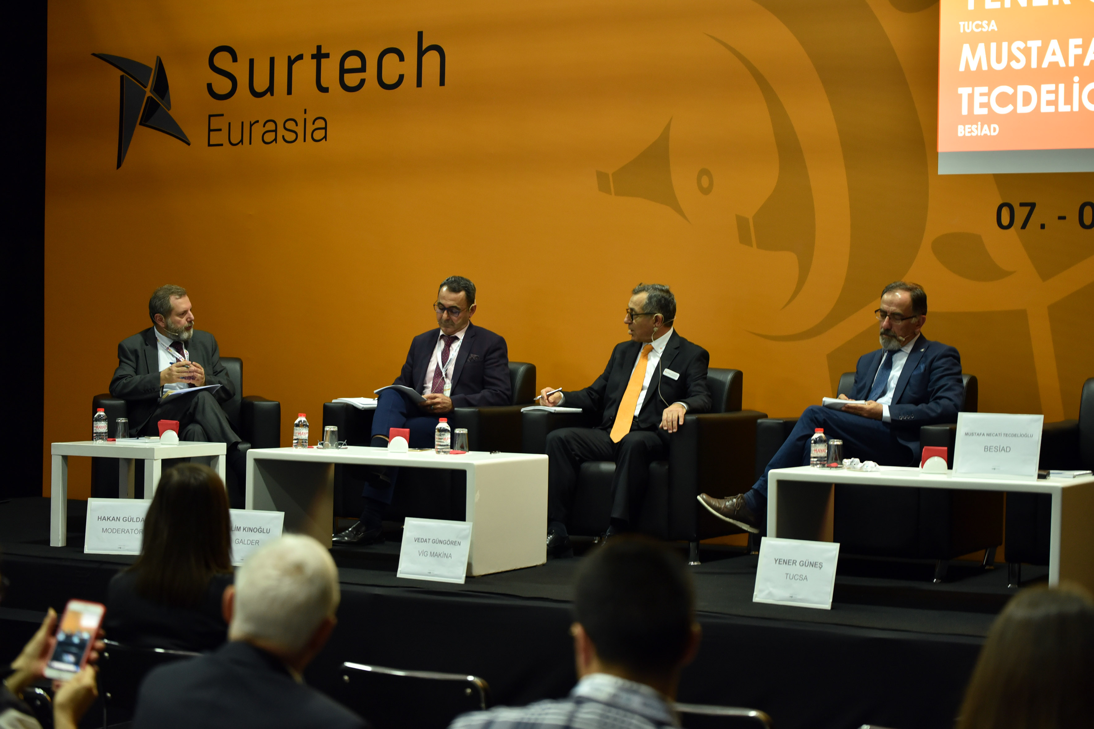 Yüzey işleme ve endüstriyel kaplama sektörlerinin önemli isimlerinin buluştuğu sektörün Türkiye’deki yeri, yenilikleri ve geleceğinin konuşulduğu panel, Gazeteci Hakan Güldağ’ın moderatörlüğünde yapıldı. Panele, Genel Galvanizciler Derneği (GALDER) Başkan Yardımcısı Alim Kınoğlu, Türk Yapısal Çelik Derneği (TUCSA) Başkanı H. Yener Gür’eş, VIG Makine Yönetim Kurulu Başkanı Vedat Güngören konuşmacı olarak katıdı.