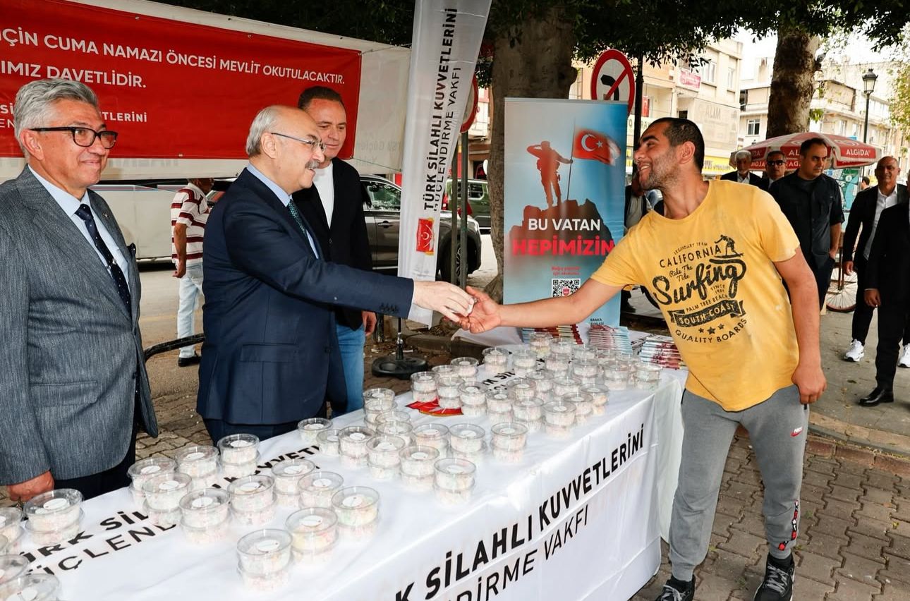 Türk Silahlı Kuvvetlerini Güçlendirme Vakfı Mersin Bölge Temsilciliği tarafından Ulu Camii’de düzenlenen mevlid programında Kur’an-ı Kerim tilavet edildi, şehitlerimizin ruhuna ithafen Mevlid-i Şerif okundu. Camiyi dolduran vatandaşlar, dualara eşlik ederek vatan uğruna canlarını feda eden kahramanlarımız için rahmet diledi.