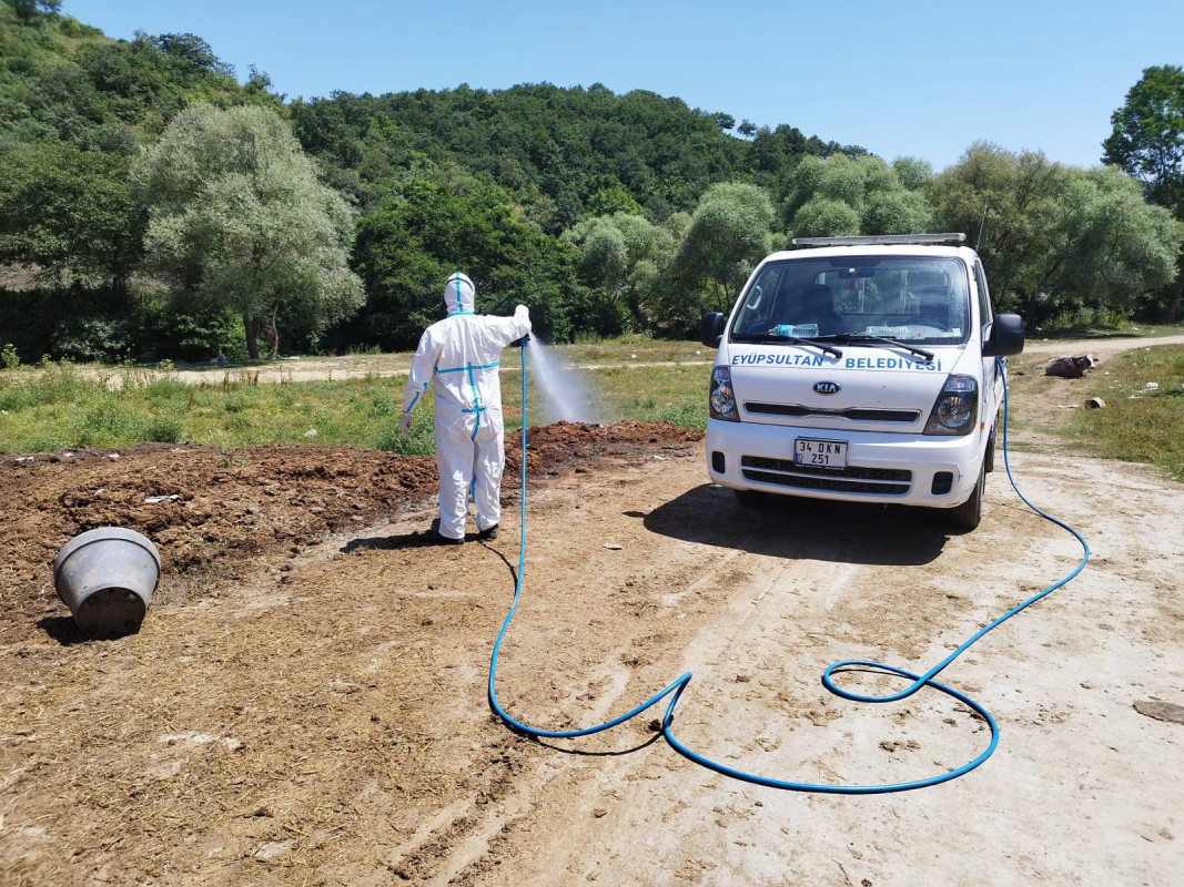 Kurban Bayramı yaklaşırken Eyüpsultan Belediyesi insan, hayvan ve çevre sağlığının korunması amacıyla, ilçedeki kurban satış alanlarında başlattığı ilaçlama çalışmalarına titizlikle devam ediyor.