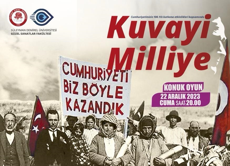 Nâzım Hikmet Ran'ın Kurtuluş Savaşı eserindeki Kuvayi Milliye Destanından bazı bölümler, toplu sanat gösterimi olarak Süleyman Demirel Üniversitesi Güzel Sanatlar Fakültesi Sahne Sanatları Bölümü ve Akademik Oda Orkestrası tarafından sahnelendi. Oyunun yönetmenliğini Dr. Mustafa Kayabaşı yaparken öğrenciler Nur Sima, Fırat Meriç Kızıloğlu ile Ahmetcan Özer, özgürlük mücadelesi sırasında yaşanan ağır koşulları ve Anadolu halkının çaresizliklerini tarihsel anlatıyla sahneye taşıyor.