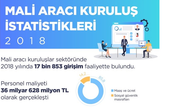 TÜİK, "2018, Mali Aracı Kuruluş İstatistikleri"ni açıkladı. Buna göre, mali aracı kuruluşlarda toplam katma değerin %89,9'u finansal hizmet faaliyetlerinde, %7,4'ü sigorta, reasürans ve emeklilik fonları faaliyetlerinde, %2,7'si ise finansal hizmetler ile sigorta faaliyetleri için yardımcı faaliyetlerde oluştu.