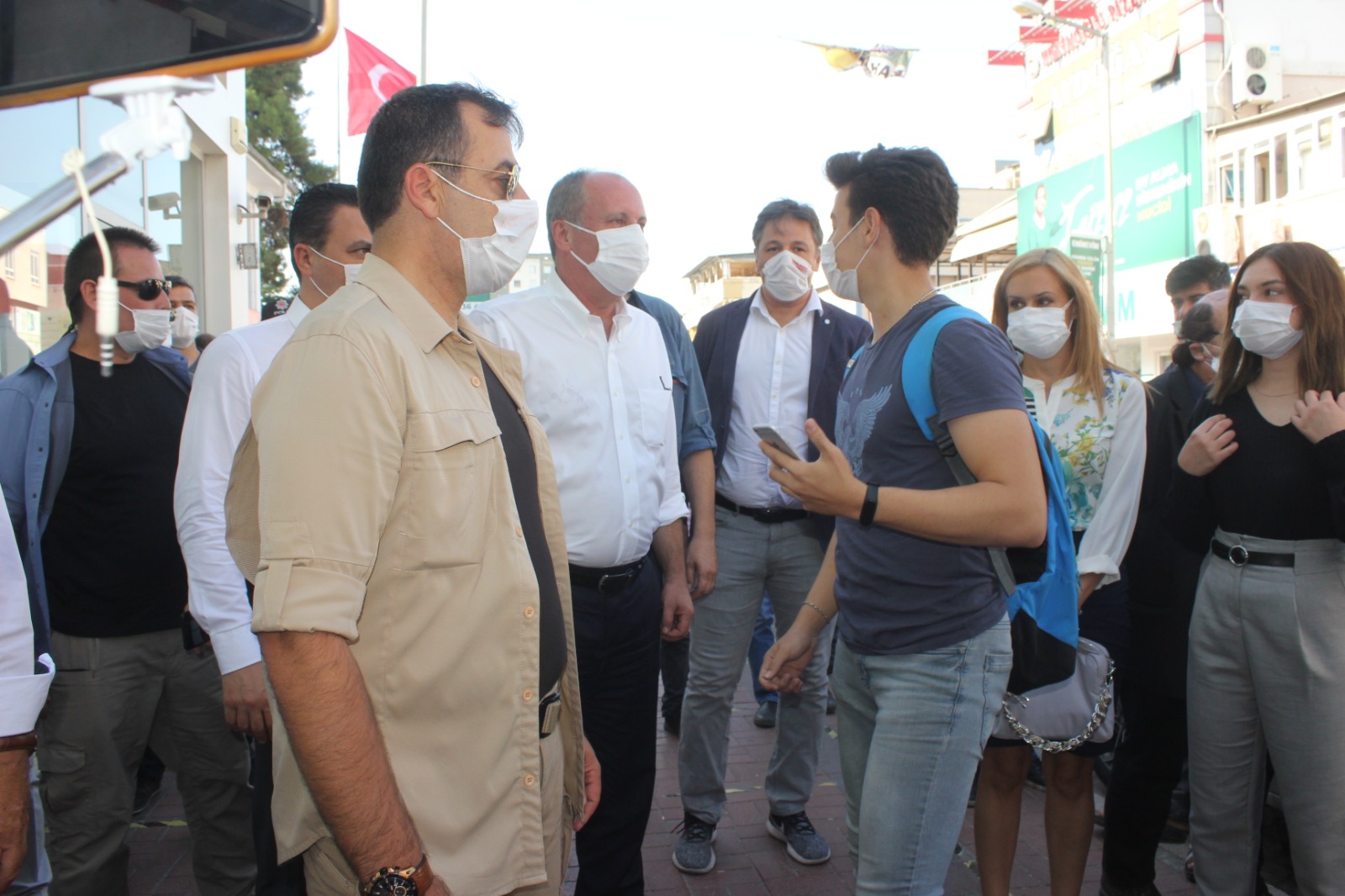 Gençlerle selfie çekilip sohbet eden İnce kısa bir basın açıklaması yaptı. İnce, Türkiye’de artık siyaset yapma tarzının değiştiğini halkın arasına karışarak siyaset yapma zamanının geldiğini ifade eden ince şu açıklamayı yaptı;”Memleket Hareketinde benimle beraber olan arkadaşlarım rahatlarından vazgeçip, memleketi karış karış dolaşmaya başladılar. Gittiğim yerlerde birkaç gerekçeyle il başkanlarımızı geç arıyorum. Bunlardan birisi pandemi, kalabalık istemiyorum. Artık insanları meydana toplayarak siyaset yapma devri bitti. Meclisten konuşma devri de bitti. Artık yeni siyaset yapma biçimi insanların kalabalık olduğu caddelere girerek insanlarla teke tek konuşma biçimidir. Bir başkası ise beni destekleyen milletvekillerini CHP yönetimi devre dışı bıraktı. Benim için arkadaşlarıma ceza vermesinler, onları kılıcın önüne atmak istemiyorum.” dedi.