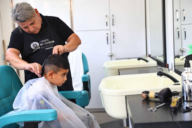 Antalya Büyükşehir Belediyesi Sosyal Hizmetler Dairesi Başkanlığı’na bağlı mobil kuaför tırı, Toros Dağları eteklerindeki merkeze uzak mahallelerde yaşayan vatandaşların kuaför ve berber ihtiyacını karşılıyor.